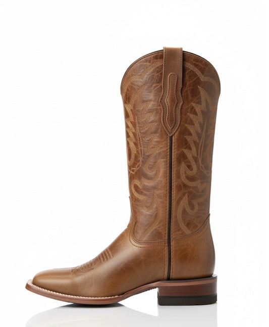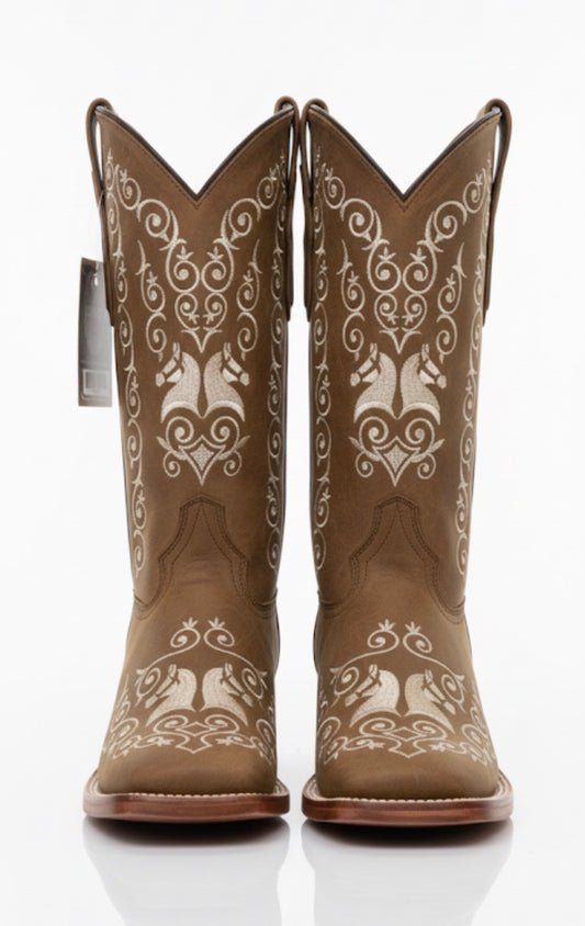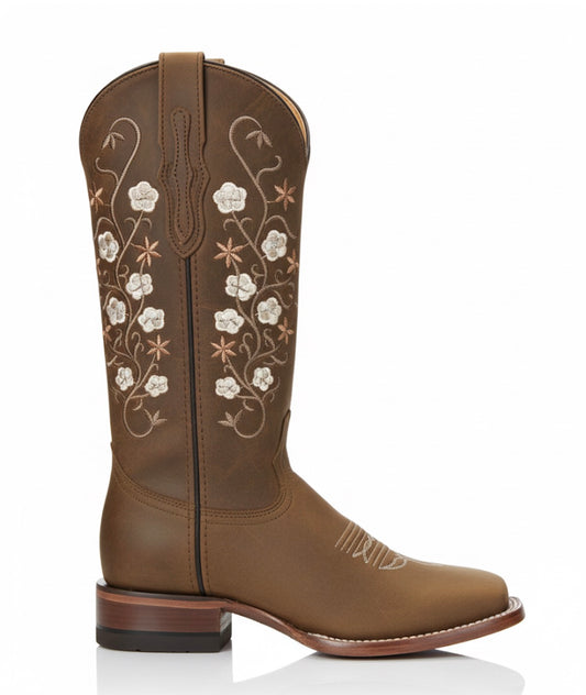 Women boots Crazy Brown With Vintage Floral Embroidery With Square Toe