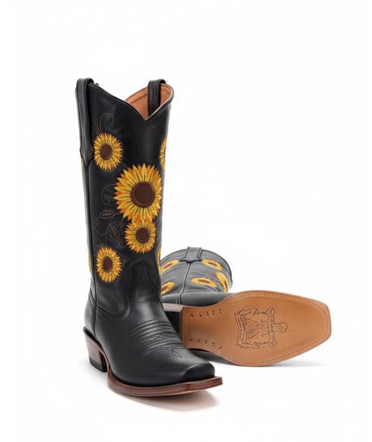 Women boots Galveston Vintage Black With Sunflower Embroidery