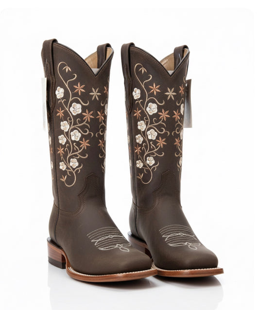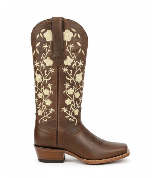 Women boots Cedar Park Vintage Brown With Sunflower Embroidery