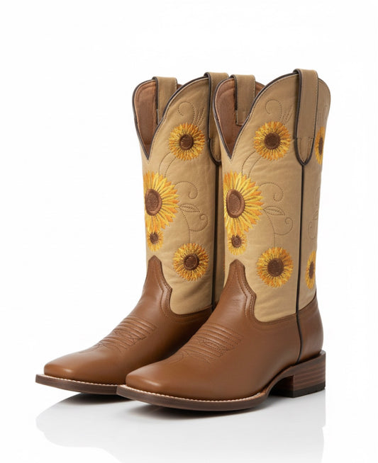 Women boots Honey With Sunflower Embroidery