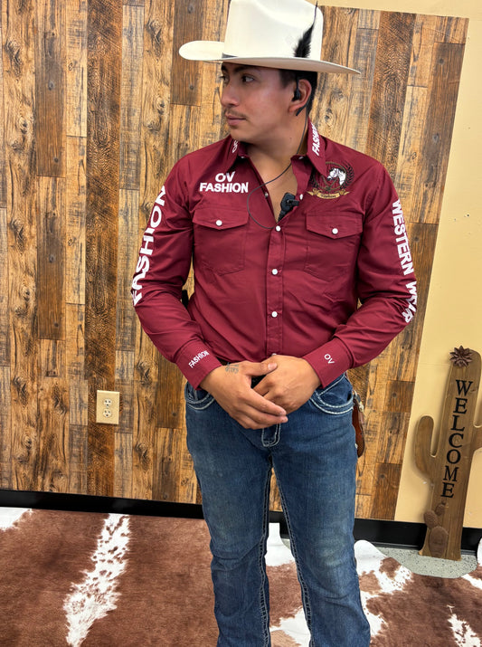 OV Fashion para hombre granate con letras blancas
